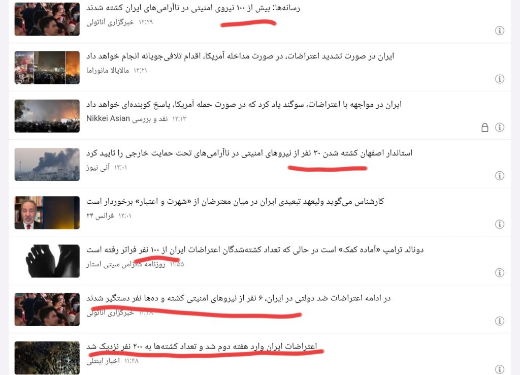اما تنها چند ساعت یا حتی چند دقیقه بعد، همان منابع یا منابع مشابه، ارقام را به دویست کشته تنها در شهر تهران افزایش میدهند. سپس در مرحله بعد، عبارت «حمام خون در سراسر ایران» و ارقامی نجومی و غیرقابل باور را مطرح میکنند. این نوسانات شدید و تناقضات فاحش در آمارها، نشاندهنده فقدان هرگونه پایه و اساس واقعی برای این ادعاها و ماهیت کاملاً ساختگی و تبلیغاتی آنهاست.