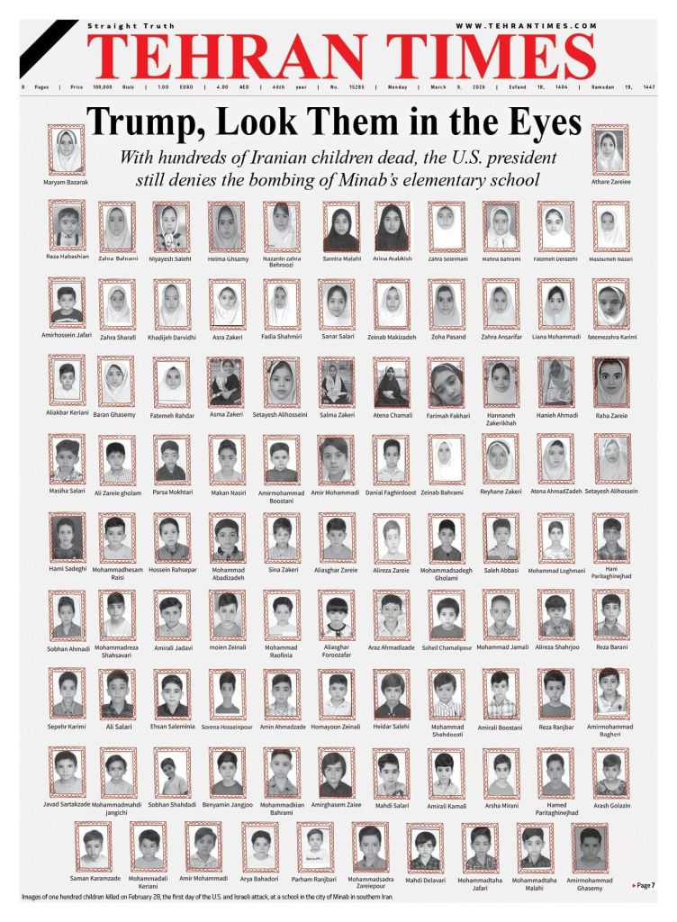 در تاریخ ۲۸ فوریه، در پی حملات موشکی آمریکا و رژیم صهیونیستی به جنوب ایران، یک مدرسه عادی و مشغول به تحصیل در منطقهای مسکونی هدف اصابت موشکهای «تاماهاوک» قرار گرفت. در این فاجعه، شماری از شهروندان بیدفاع و کودکان معصوم جان باختند. ساعاتی پس از این رویداد، دونالد ترامپ با بیانیهای شگفتآور و وارونهنماییِ حقیقت، مدعی شد که این «کار خود ایرانیها» بوده است؛ ادعایی که خیلی زود با واکنش رسانههای آمریکایی تکذیب شد و بار دیگر چهره ناصادق و ماهیت جنایتکار این جنگ را برملا ساخت. در این میانه حتی رسانههای امریکایی و بخشی از دولت امریکا اعتراف کردند که این حمله توسط آمریکا صورت گرفته است.