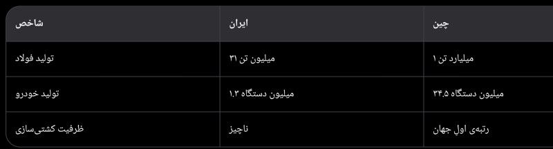 از هر معیاری که بسنجید، توانِ صنعتیِ چین، دستکم بیست برابرِ ایران است؛ و مهمتر از آن، پکن—برخلافِ تهران در دورانِ خاتمی و روحانی—هیچ «خود-محدودکنندهای» در توسعهی موشکهای بالستیکِ دوربرد یا فناوریهای پیشرفته ندارد.