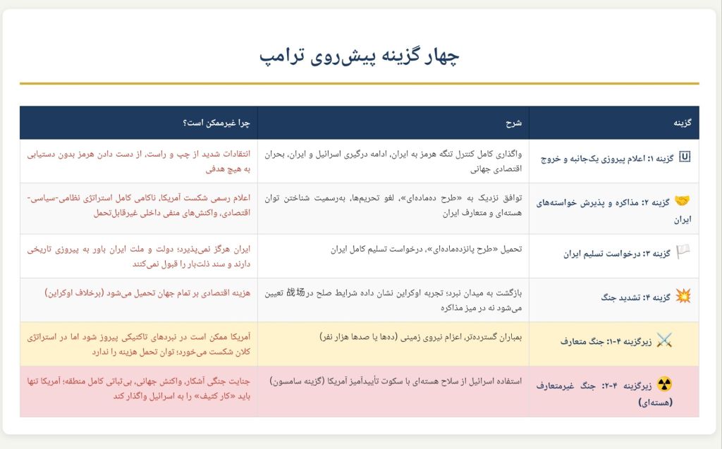 ۵. چهار گزینهٔ پیشروی ترامپ: واکاوی نهایی