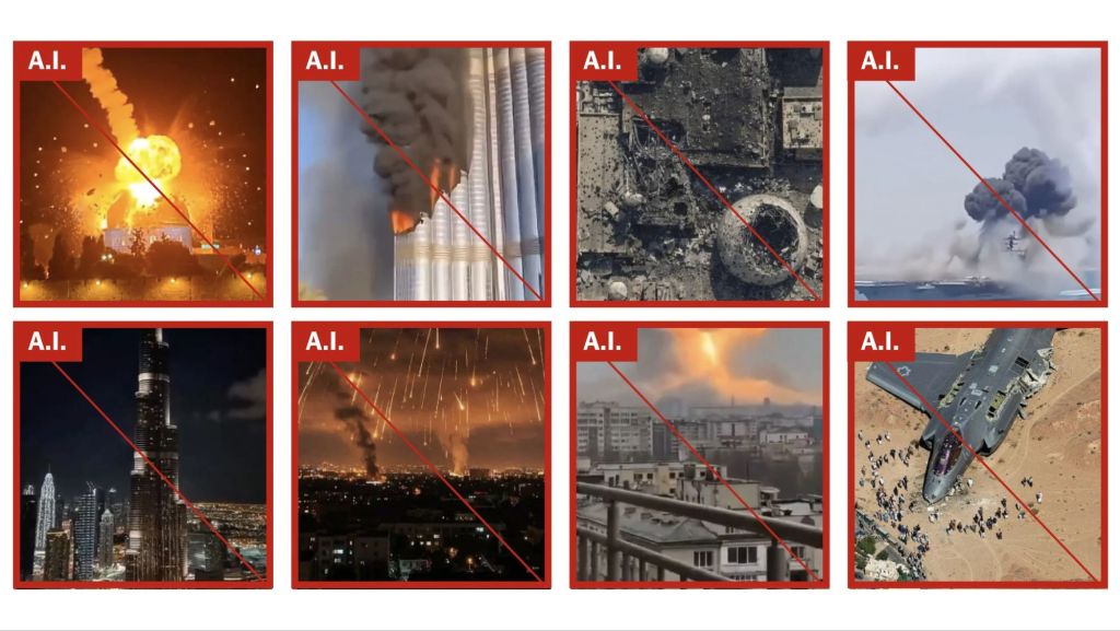 ویدیوهای جعلی متعددی که درگیری بین ایالات متحده و اسرائیل (ایران) را به تصویرمی کشند، میلیونها بار به اشتراک گذاشته شده است.درهفتههای اول جنگ در ایران، موجی از ویدیوها و تصاویرجعلی تولید شده توسط هوش مصنوعی، رسانههای اجتماعی را فرا گرفته است. این ویدیوها انفجارهای عظیم، ویرانی شهرها را نشان می دهند و یا سربازانی را که درجنگ هرگزنبوده اند به تصویر میکشند …بنابراین هرج و مرج و سردرگمی پیرامون رویدادهای آنلاین را تشدید می کنند.