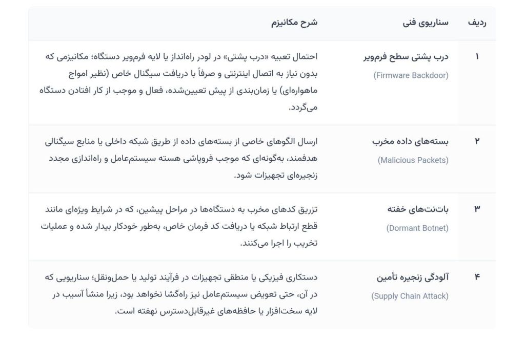 از دیدگاه تحلیلگران ایرانی، این رخداد بیش از آنکه یک حمله سایبری متعارف از بیرون از مرزها تلقی شود، شبیه به فعالسازی یک «مکانیزم خرابکاری از پیش تعبیهشده» در لایههای عمقی سختافزار یا نرمافزار این تجهیزات است. چرا که اگرچه در آن مقطع، ارتباط ایران با اینترنت جهانی تقریباً بهطور کامل قطع بود، اما دقت زمانی وقوع این اختلالات، فرضیه «حمله معمولی از راه دور» را با تردید جدی مواجه میسازد.